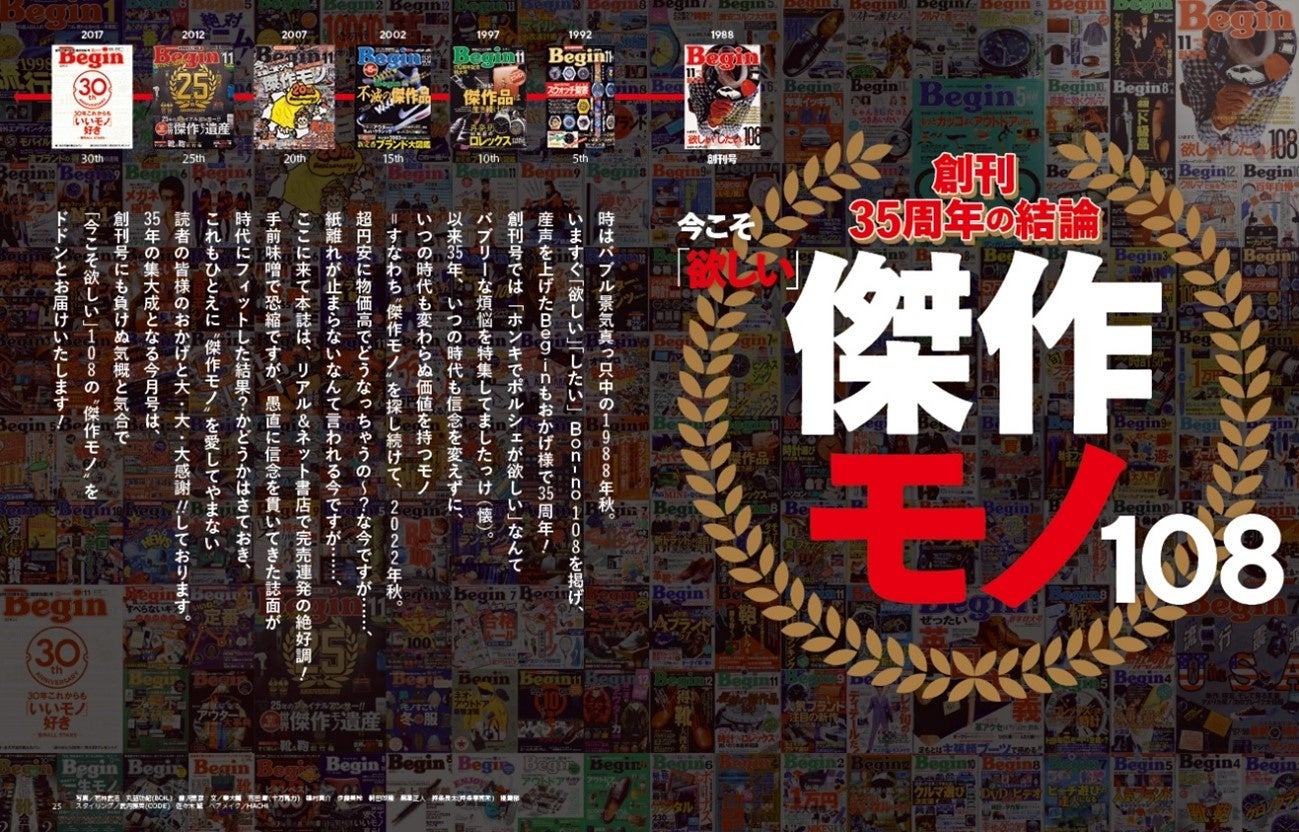 創刊35周年記念号『Begin11月号』発売! 今こそ「欲しい」傑作モノ108連発!