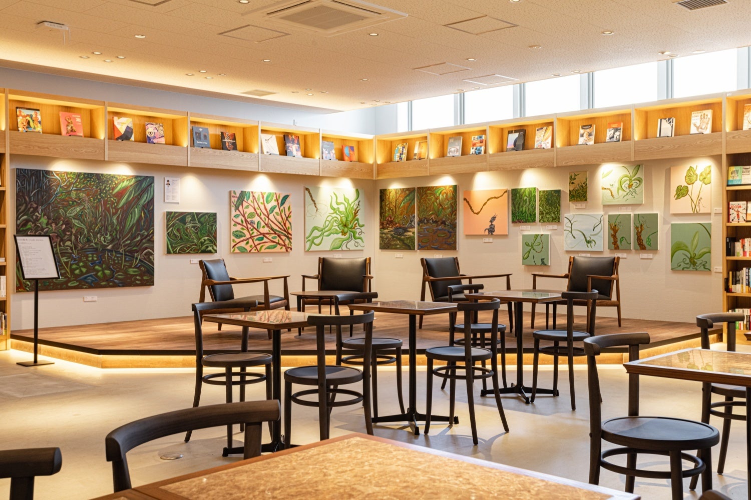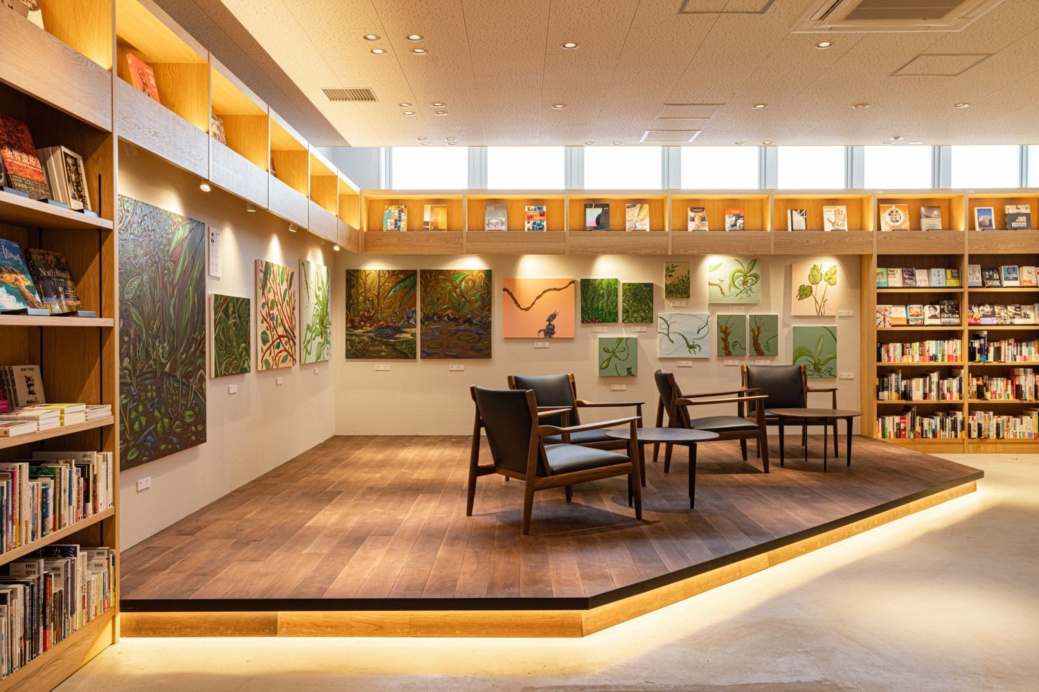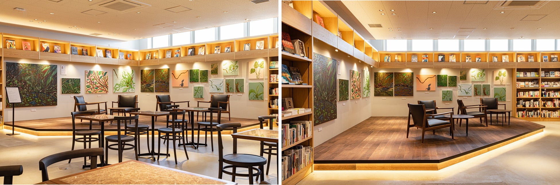 書店内には、アートを身近に楽しむことができる「Art Lounge」があり、そこには大きなアートウォールが設置されています。このアートウォールに設置するアート作品は、2022年9月に開業した「Artist Café Fukuoka」(※)と連携し公募によって選定された、村田優希さんの作品展 『華獣の苗床』です。