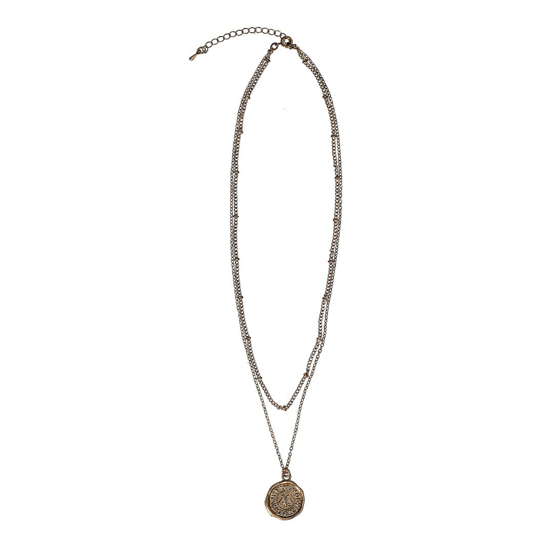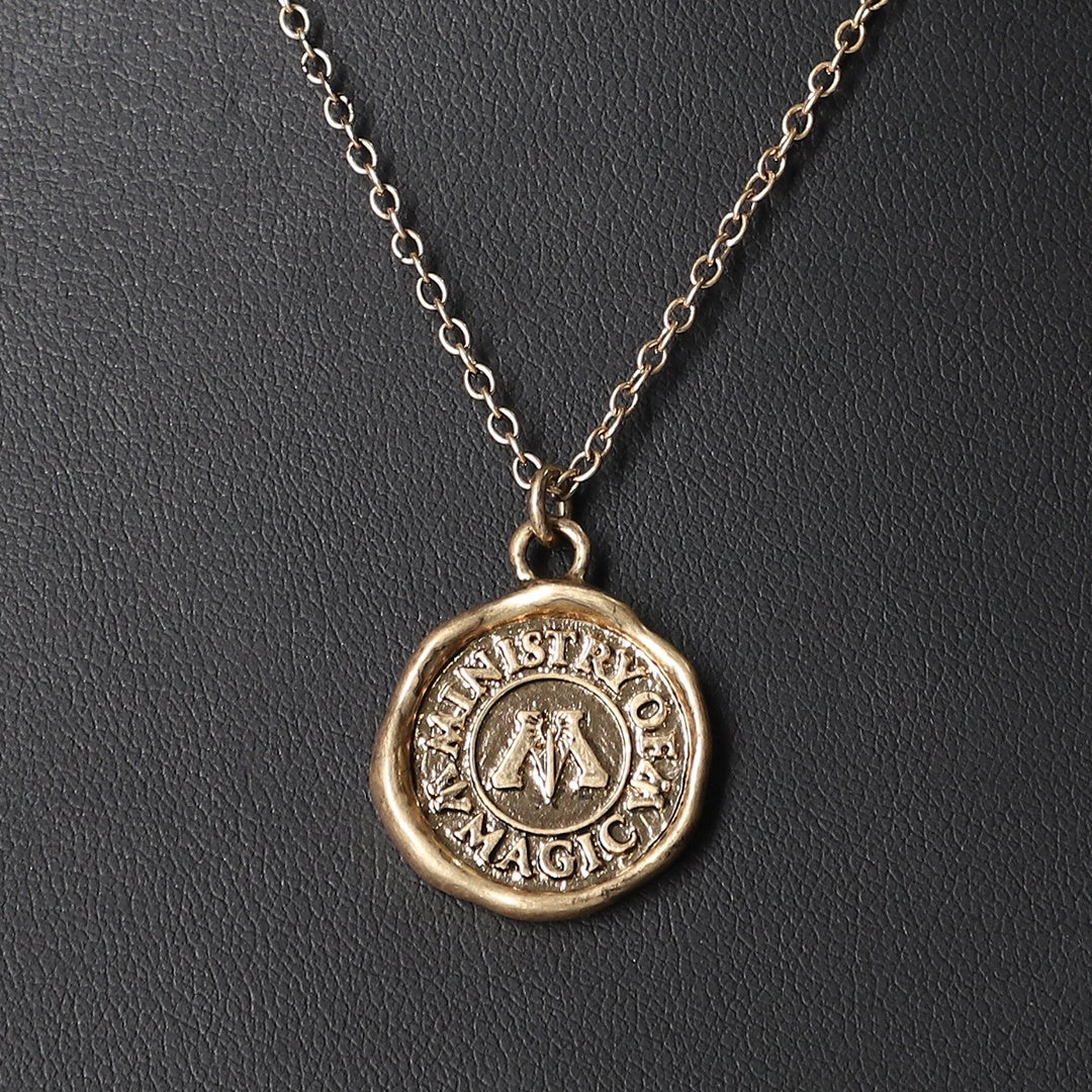 魔法省の封蝋のモチーフが付いたネックレスです。長めのチェーンはレイヤードして着用いただけます。