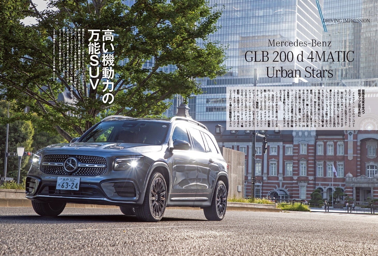 現在 GLC に次ぐ人気モデルとなっているのが GLB だ。狭い都会でも高い機動力を発揮するコンパクトなボディ、それでいて大人7人を許容する室内の高い利便性は、Cセグメントの SUV としてはほかにない唯一無二の存在。その人気を加速させるために追加されたのが新グレード「アーバンスターズ」である。さっそくその走りを確かめてみた。
