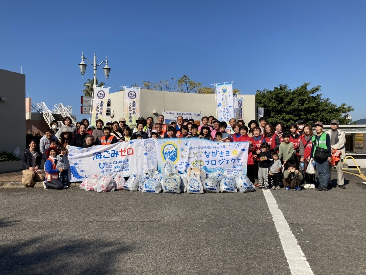 一斉清掃イベントは、平成27年度から「ながさきサンセットロード」のルート沿線(松浦市、平戸市、佐々町、佐世保市、西海市、長崎市)で活動されている地域の方々や関係行政、県民の皆さんと一緒に取り組みを始め、一昨年から「島原半島うみやま街道」と連携して同時開催をしており、昨年に引き続き、NEXTながさき☆ごみゼロプロジェクトの活動に深く賛同いただき、一緒にイベントを実施させて頂きました。