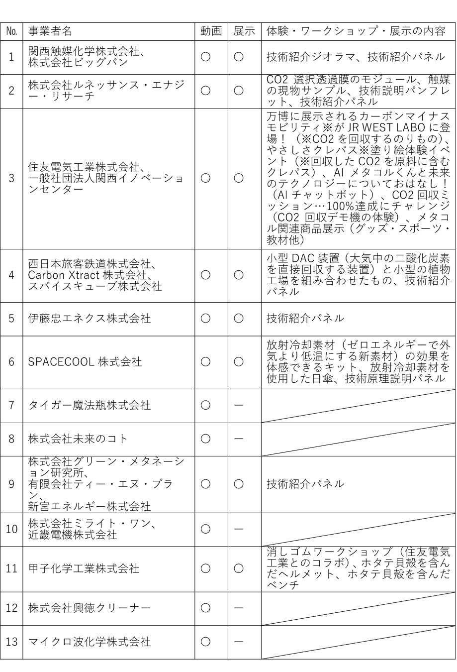 ※展示技術分野、事業者名を五十音順で表記。