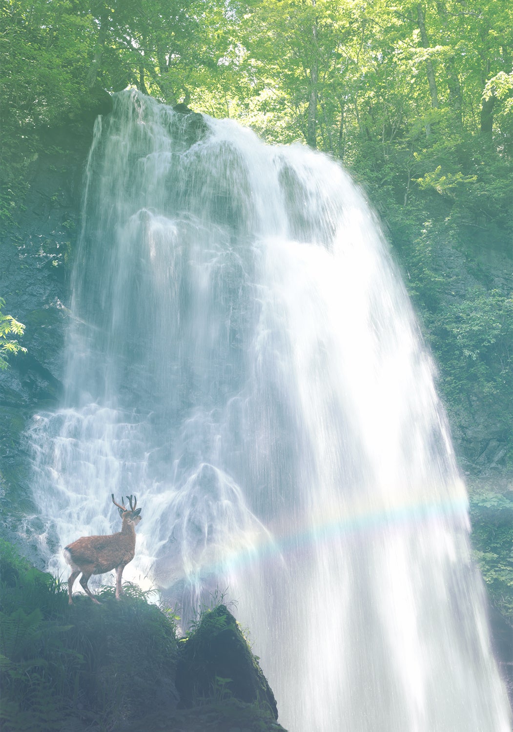 海に注ぐ川があり、その源流に森があり、そこに生まれる霧からの一滴の雫が樹々を育くみ、光を浴びて、森は豊かに成長します。森に生きる動物や鳥、昆虫たちの共生をイメージし、里山の生き物たちも一緒に水の豊かな森を表現致しました。カメラを通して樹や花、命あるものと向き合う中で愛おしさが募り、慈しみの光に包まれている事に感謝の気持ちが溢れます。