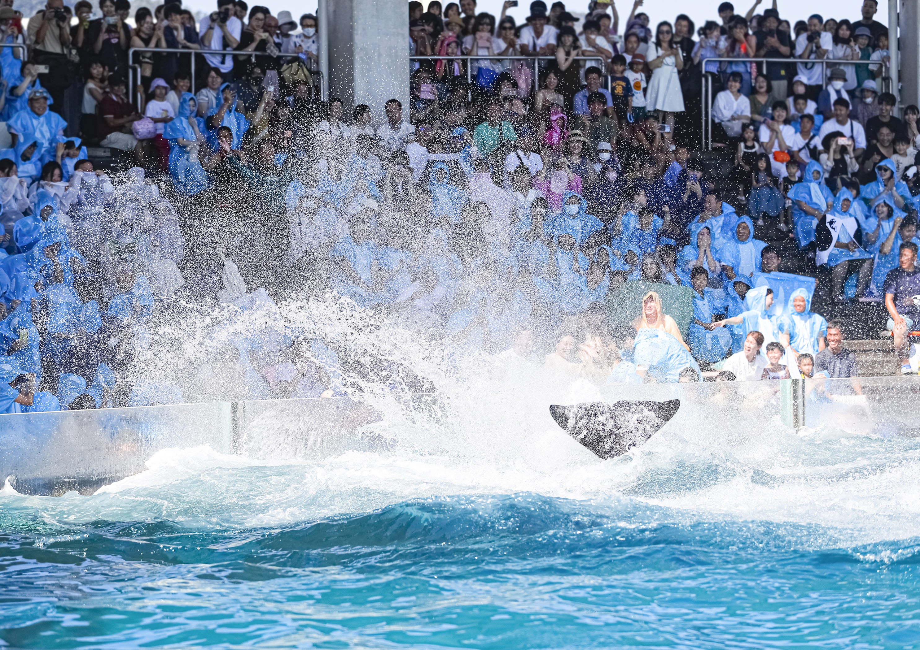 「サマースプラッシュ」は、シャチが幅1.5メートルを超える巨大な尾ビレでお客様に豪快な水しぶきを浴びせかける恒例の大人気イベントです。今年の夏も2023年8月31日まで開催し、シャチの迫力と涼を楽しむお客様から大変好評でした。夏イベント終了に伴い、多くのお客様からアンコールをいただいたこと、まだまだ暑さが続きそうなことから、あらためて実施日を追加し、シャチが放つ水しぶきを再びお届けすることとなりました。