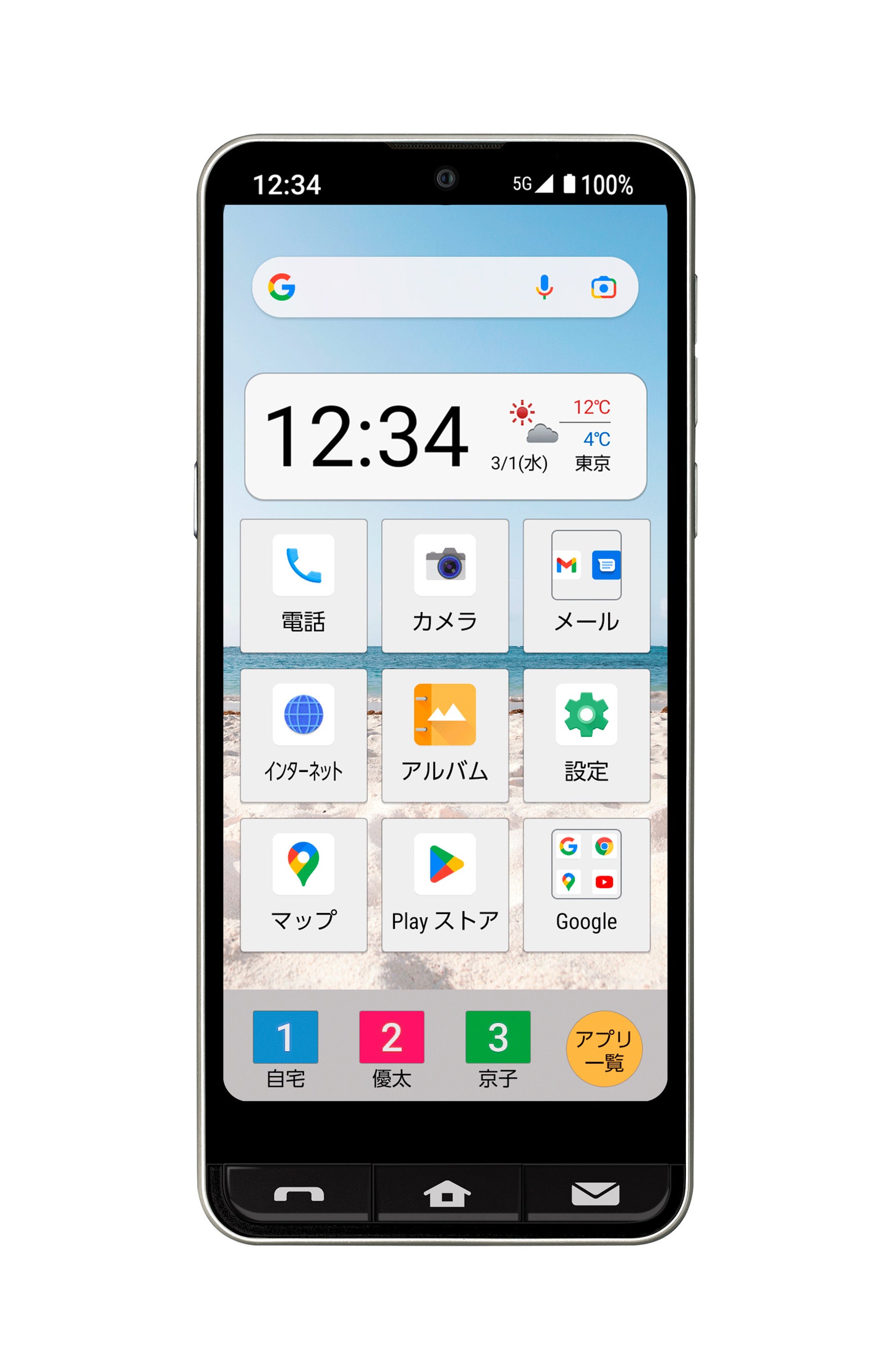 ・ 電池長持ち、大きくて見やすいホーム画面、ボタン操作もできるから安心&使いやすい ※1