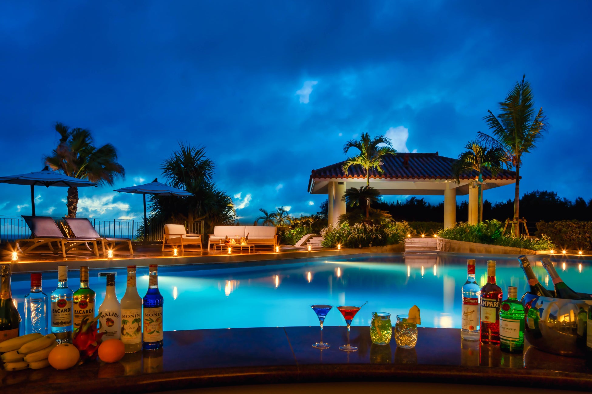 今年の夏は、“沖縄で過ごす夜時間”に着目し、『FUN NIGHT @resort』と題して、ナイトタイムコンテンツを拡充いたしました。緑豊かな丘の上から海が見渡せるオリエンタルホテル 沖縄リゾート&スパ自慢の屋外プールは、7月1日(土)~10月31日(火)の4か月間、沖縄県のどの施設よりも長く、ナイトプールの遊泳を22時まで延長いたします。また、日頃の疲れを癒すスパやサウナの他、南国のリゾート気分が満喫できるプールサイドバーは23時までオープンし、BBQやバーメニューがお楽しみいただけます。