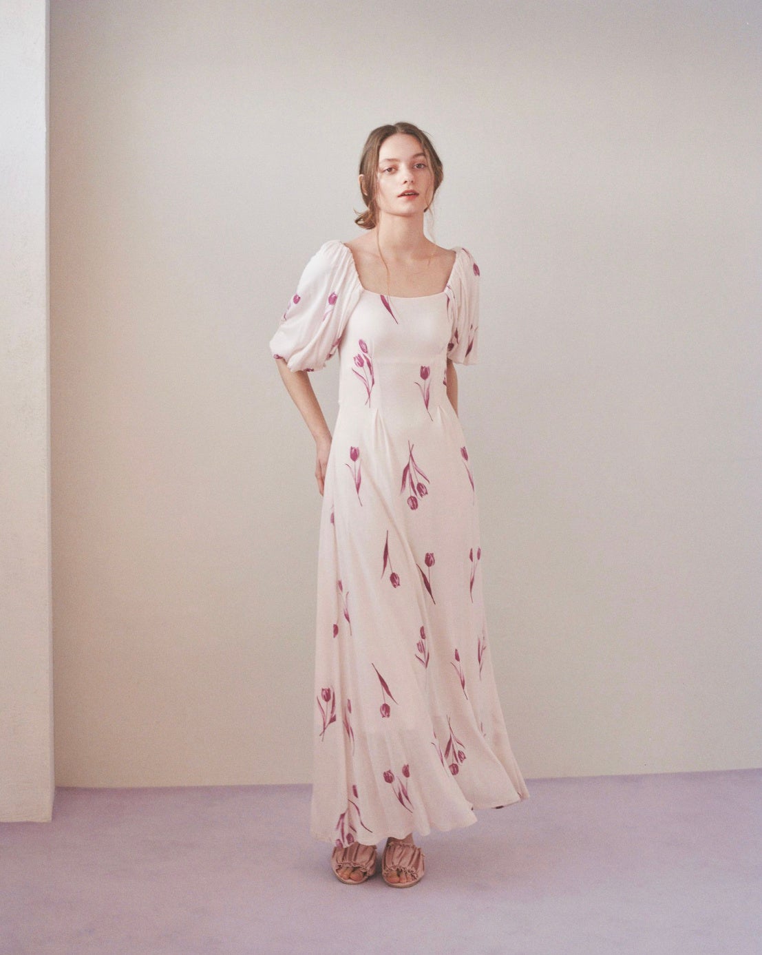 ドレスはウエスト位置を高めに設定し、スタイルアップを実現します。