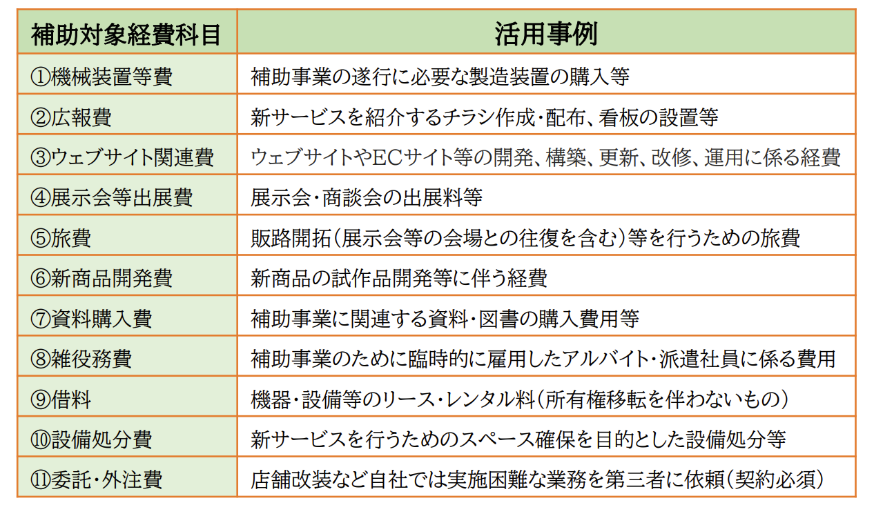 原則、以下の科目が対象経費となる。