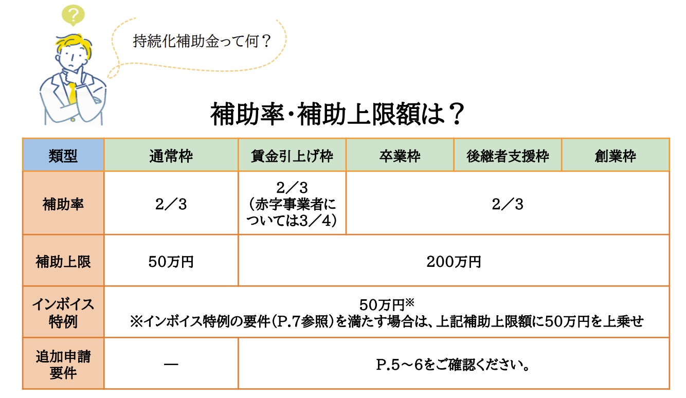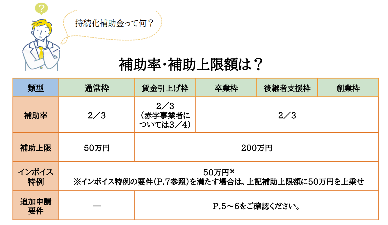 詳細は小規模事業者持続化補助金(一般型)ガイドブック を確認。(jizokukahojokin.info)