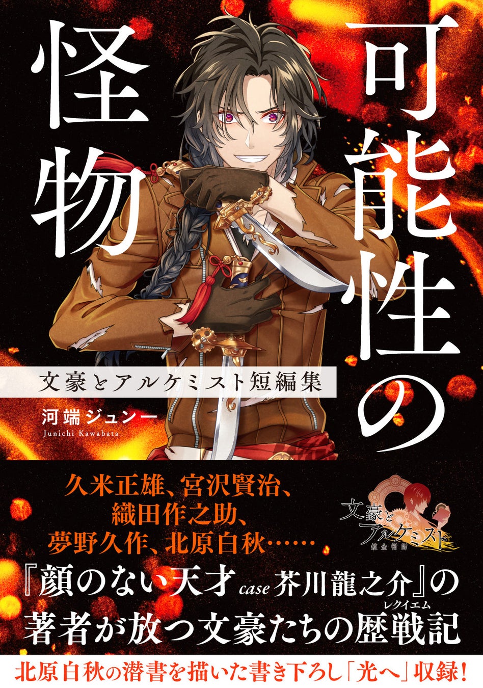 大人気ゲーム「文豪とアルケミスト」公式ノベライズ最新刊『可能性の怪物 文豪とアルケミスト短編集』が3月28日(木)発売決定しました。作者はノベライズ第一弾の書き手でもあり、文豪とアルケミスト7周年イベント「浄化任務 侵蝕者ノ魂ヲ浄化セヨ」で「研究書」の書き下ろしシナリオを担当した河端ジュン一さん。