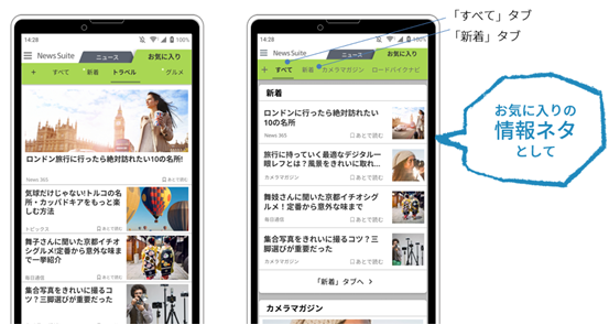 また、最新情報を収集できる「新着」タブを新たに追加し、これら2つのタブを活用することで、自分だけのオリジナルページから気になる情報を収集しやすくなります。