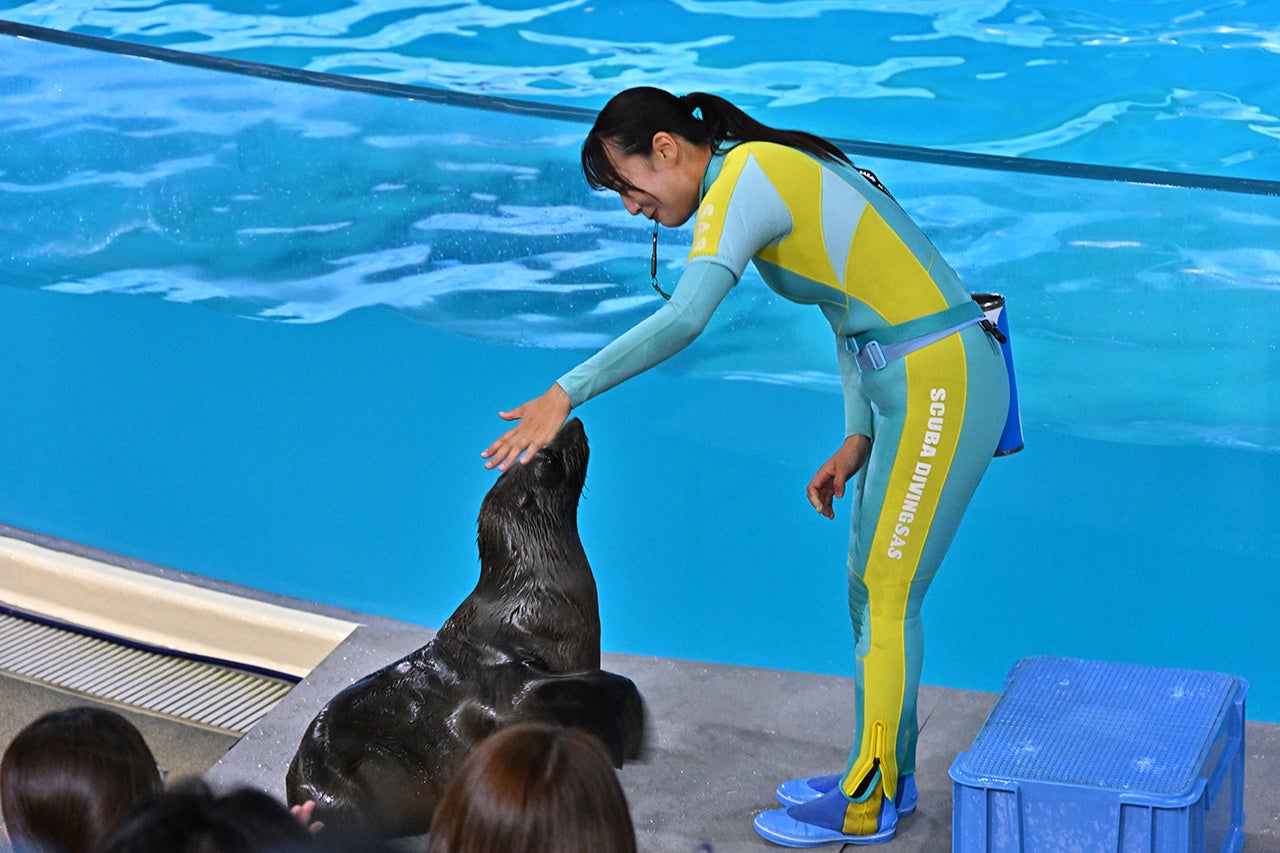 イベント後半では、ミナミアメリカオットセイのセシによるミニコーナーも実施。セシが観客の身振りに応える可愛らしいパフォーマンスを披露すると、続いて人間のガクもステージに登場。ガクも観客の身振りに懸命に応え、ご褒美でもらった小魚を口いっぱいにほおばった。また、真空ジェシカと新江ノ島水族館公式キャラクター“あわたん”の大喜利対決も行った。こちらも予想外の実力を見せた“あわたん”に軍配が上がり、負けた真空ジェシカは“あわたん”とのコラボ動画を自身のYouTubeチャンネルにアップすることを約束した。