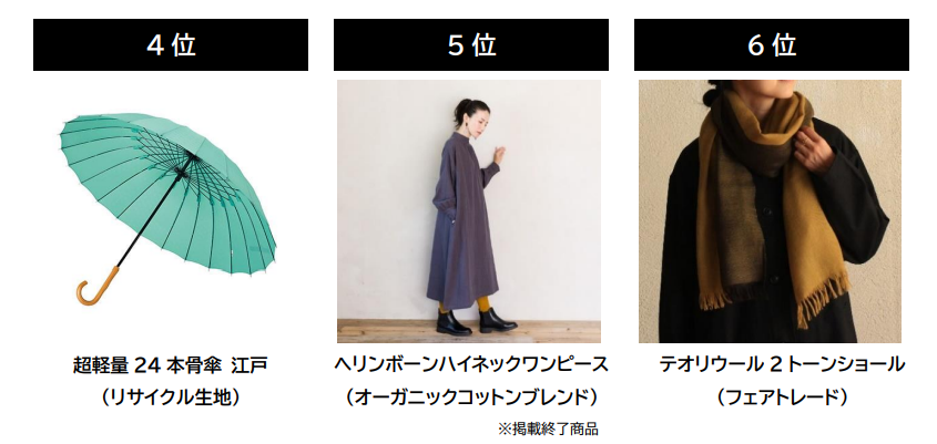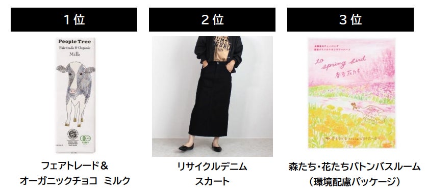 - 人気商品ランキング1位はフェアトレードチョコレート、次いで2位リサイクルデニム、3位バスバッグ