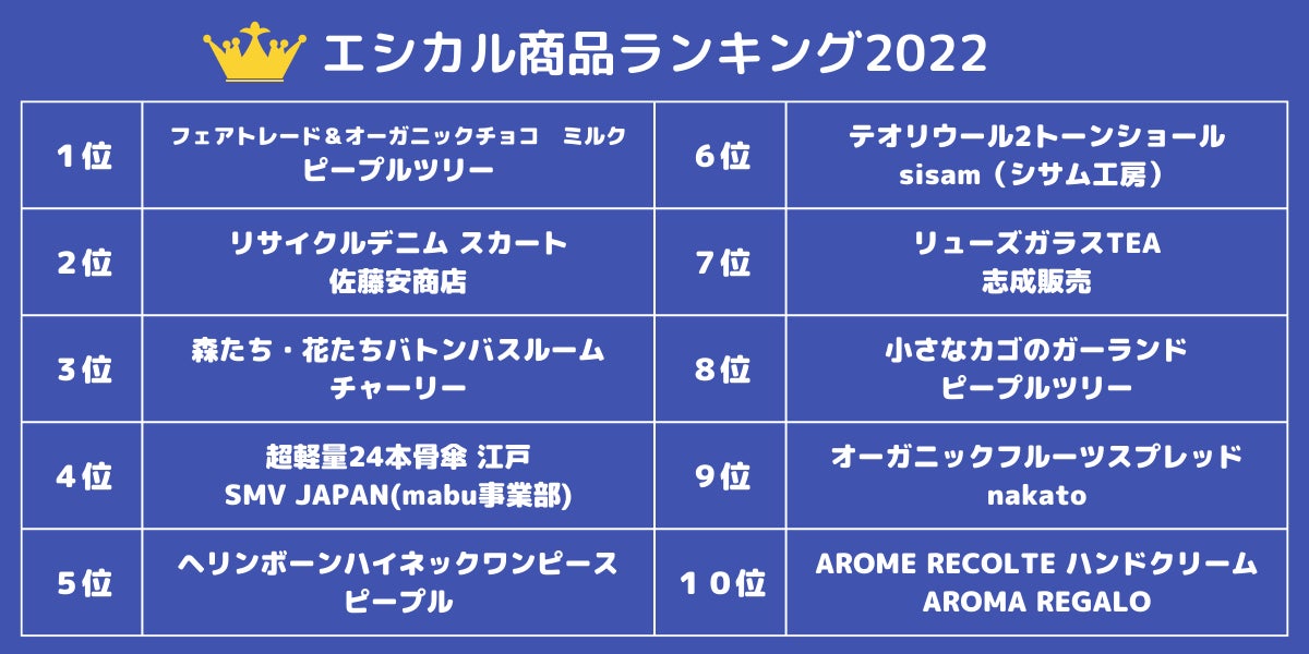 【エシカルレポート2022】人気のエシカル商品ランキングTOP10発表 流通額3年で約4倍 エシカル商品販売メーカー7割が販売拡大に意欲的
