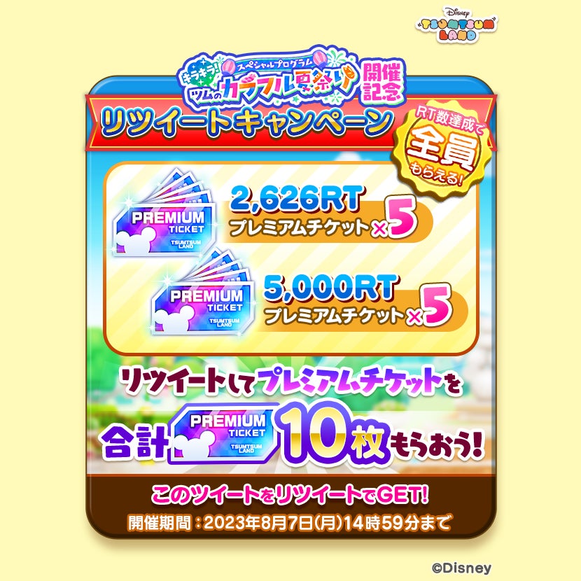 対象ツイートのリツイート数に応じて最大でプレミアムチケット10枚をプレゼントいたします。