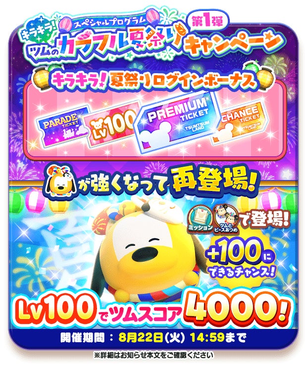「スペシャルプログラム~キラキラ!ツムのカラフル夏祭り~キャンペーン第1弾」開催!