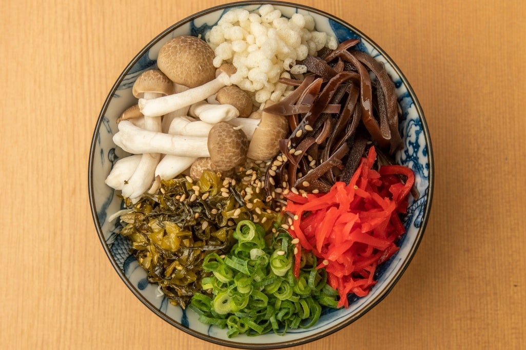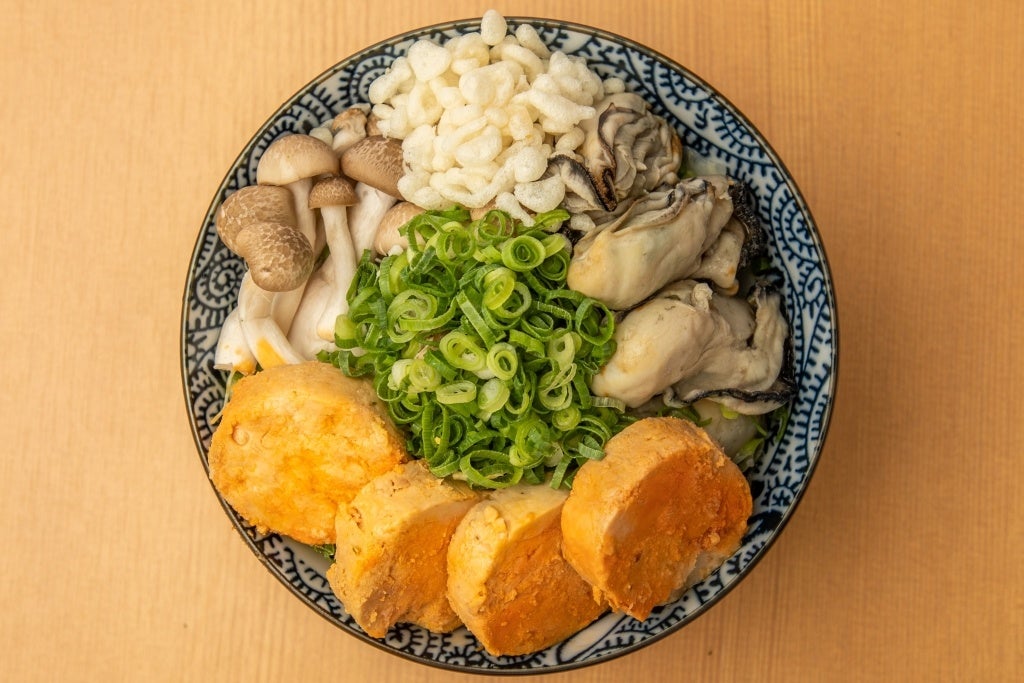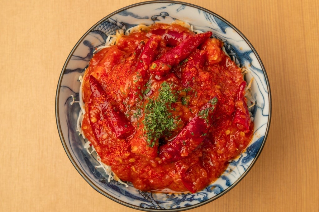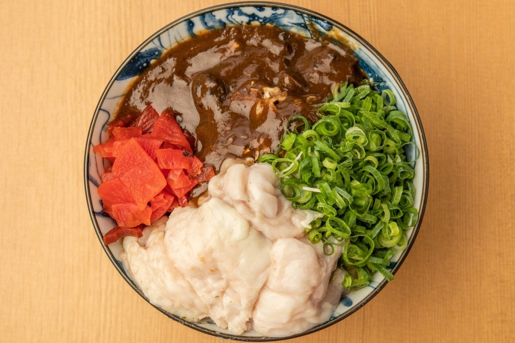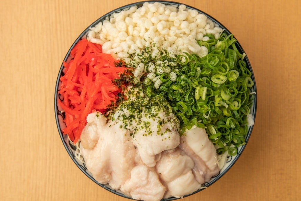 冬に限らず、オールシーズン「九州黒太鼓」の名物としてご愛顧いただいている「もつ鍋」。新鮮で大ぶりな牛の生もつは、ぷりっぷりで、鉄板で焼くことにより、旨みたっぷりの脂が溶け出し、生地に味の深みを加えます。定番の醤油、塩、とろろのシンプルな和風味に加え、明太子&バター醤油、カレー&チーズの味の洋風な変わり種、さらにz世代から熱視線を集めるチュクミを使ったものまで全6種のヴァリエーションをお楽しみください。