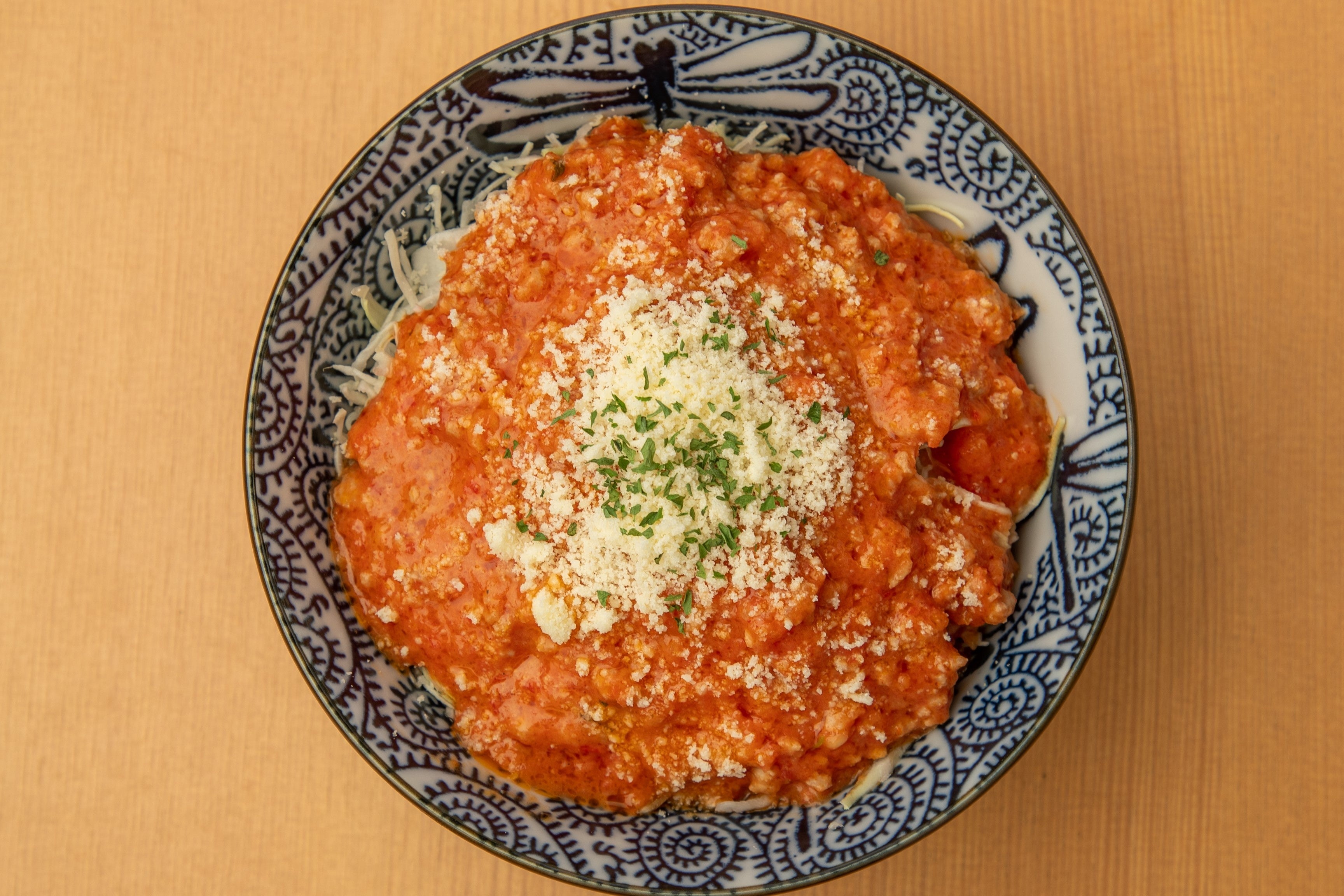 ベル豚特製!一番人気のパスタソースが、黒太鼓に出張してきてくれました。挽き肉と香味野菜をじっくり丁寧に炒め合わせたトマトベースのソースは、パスタに留まらず、もんじゃのキャベツとの相性も抜群!