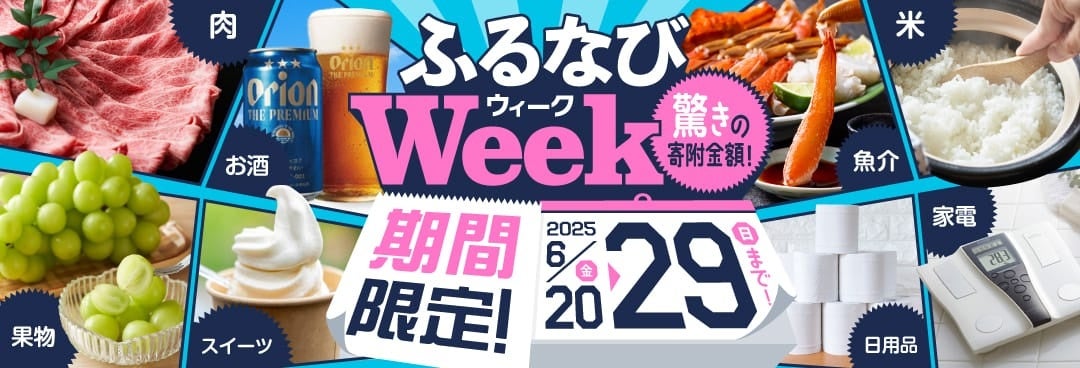 ふるさと納税サイト「ふるなび」が、6月29日(日)までの期間限定で「ふるなびWEEK」を開始!驚きの寄附金額返礼品を多数掲載!