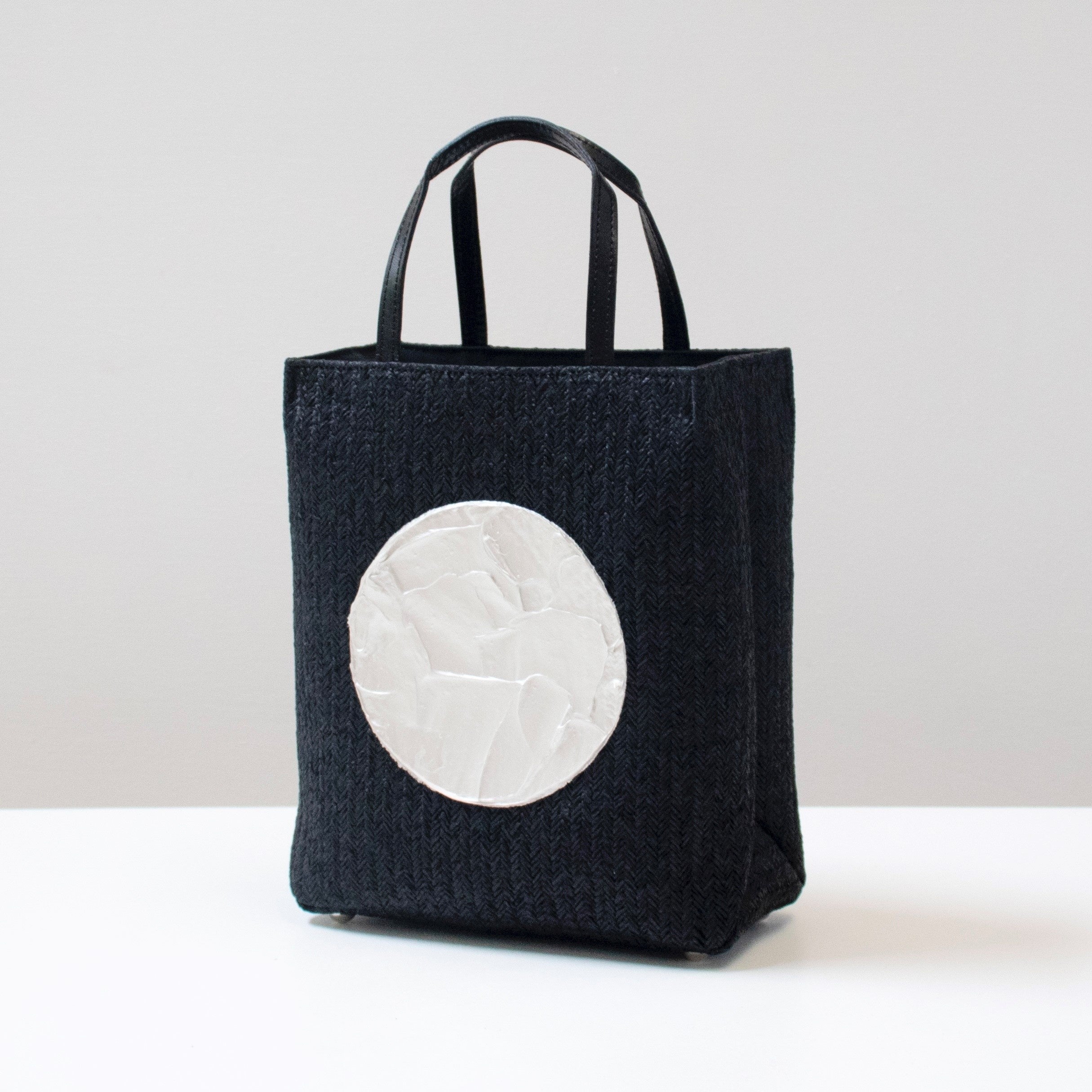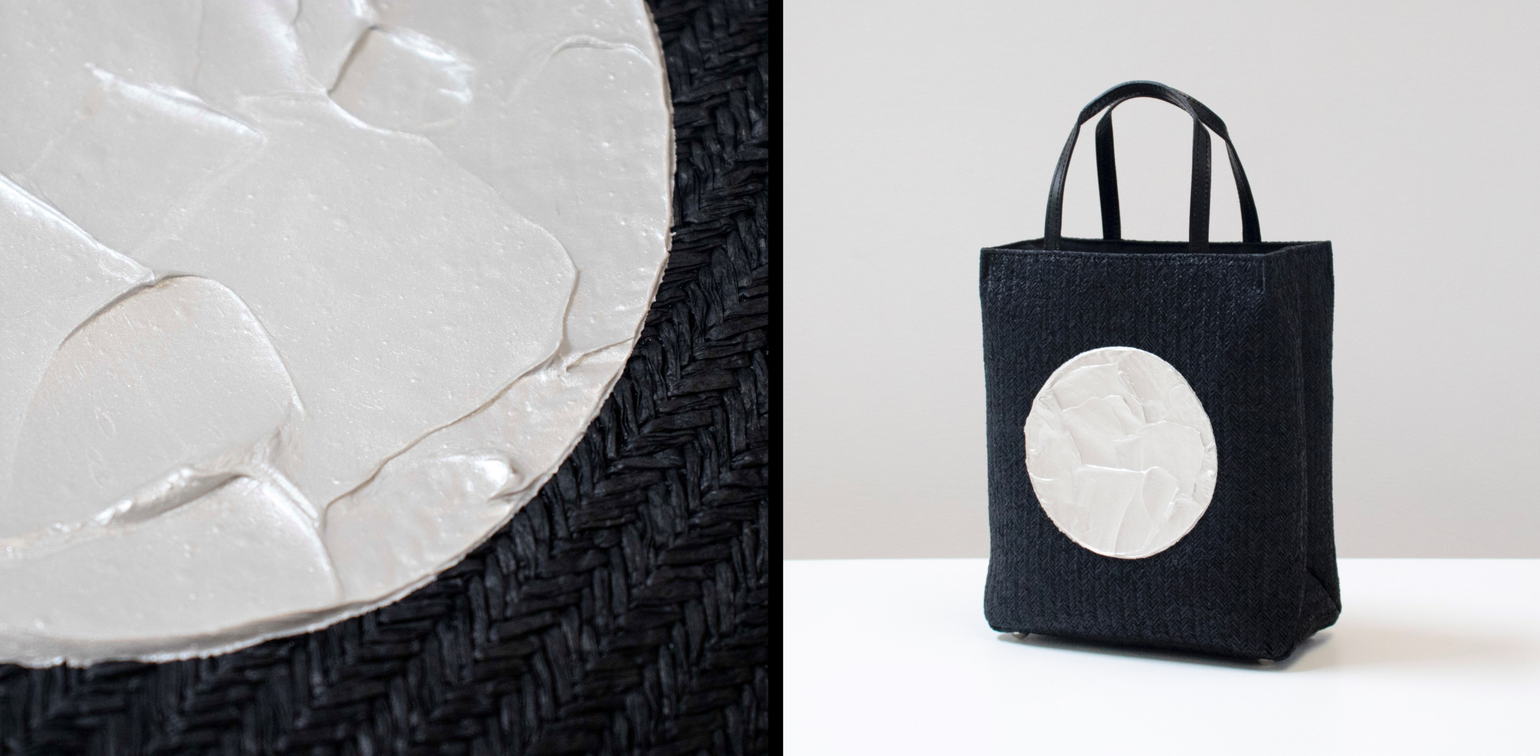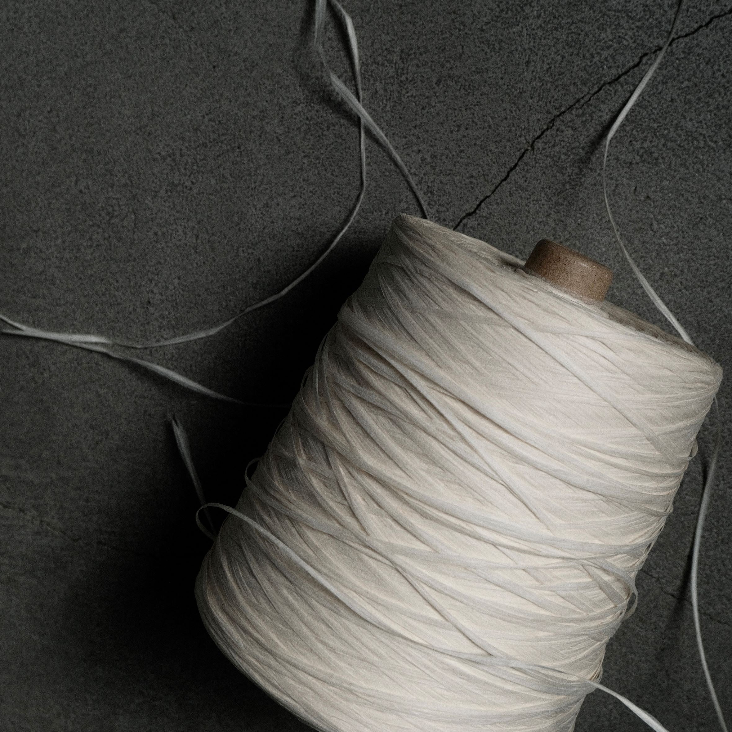 [ textiletells ] では、マニラ麻を原料にした和紙をテープ状にカットして編み上げた「紙糸繊維」をバッグの表面に使用しています。