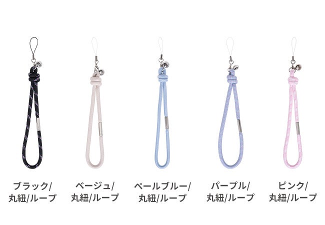 カラ-は、「iFace」のスマホケースに合うブラック・ベージュ・ペールブルー・パープル(丸紐のみ)・ピンク(丸紐のみ)を展開します。