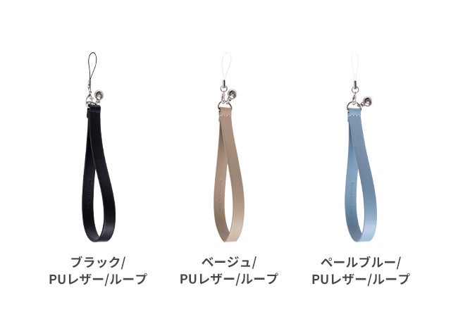 ペールブルー/PUレザー/ループ、ブラック/丸紐/ループ、ベージュ/丸紐/ループ、