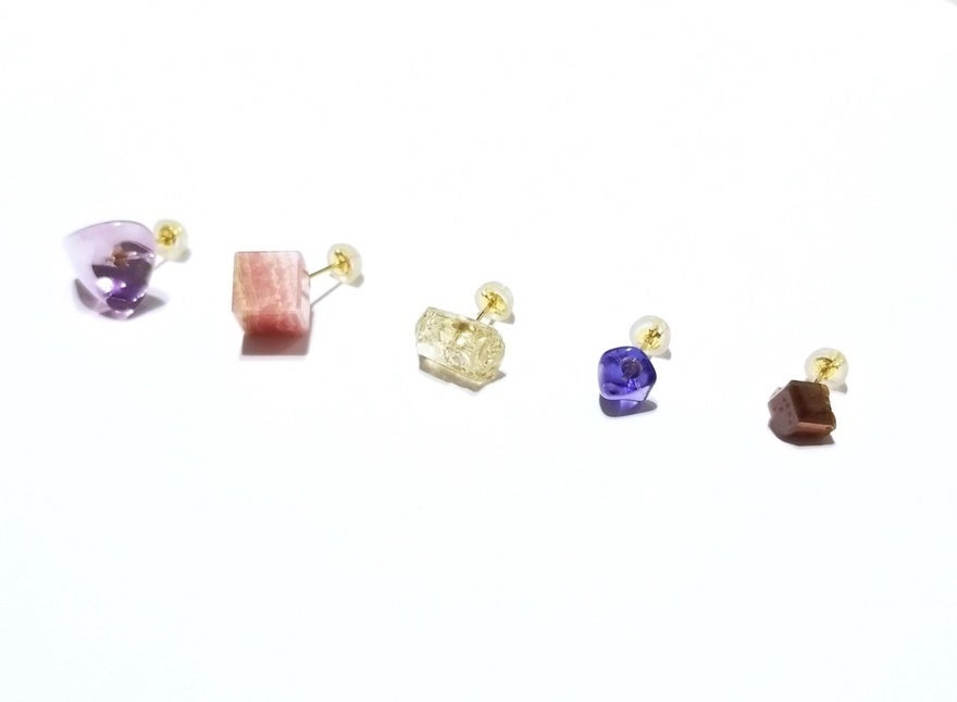 原石の形を活かし、伝統工芸士が、丁寧に一点もののピアスに仕立てました。