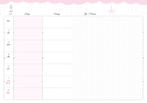 『お姫さま手帳』は、「可愛く」「優しく」「品よく」生きることを叶える魔法の手帳。書くたびに自己肯定感が高まり、明日の私に自信を与えてくれます。