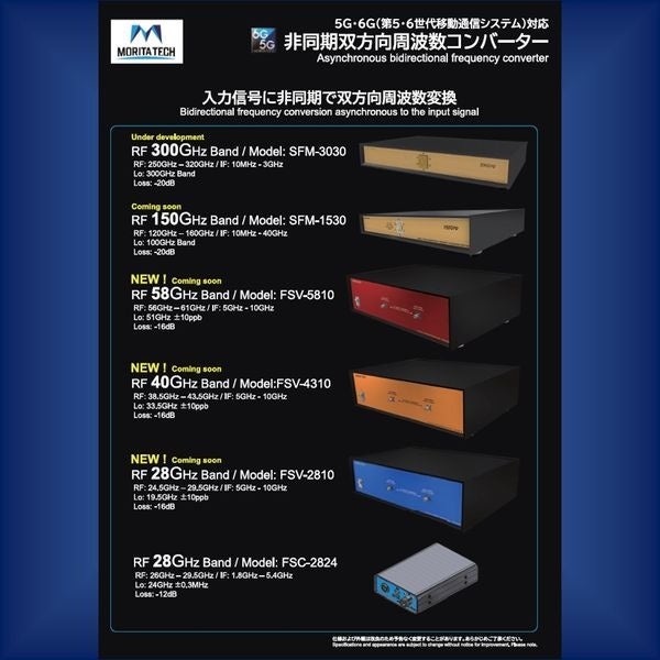 5G・6G(第5・6世代移動通信システム)に対応。入力信号に非同期で双方向周波数を変換できます。複数のモデルを展開しています。