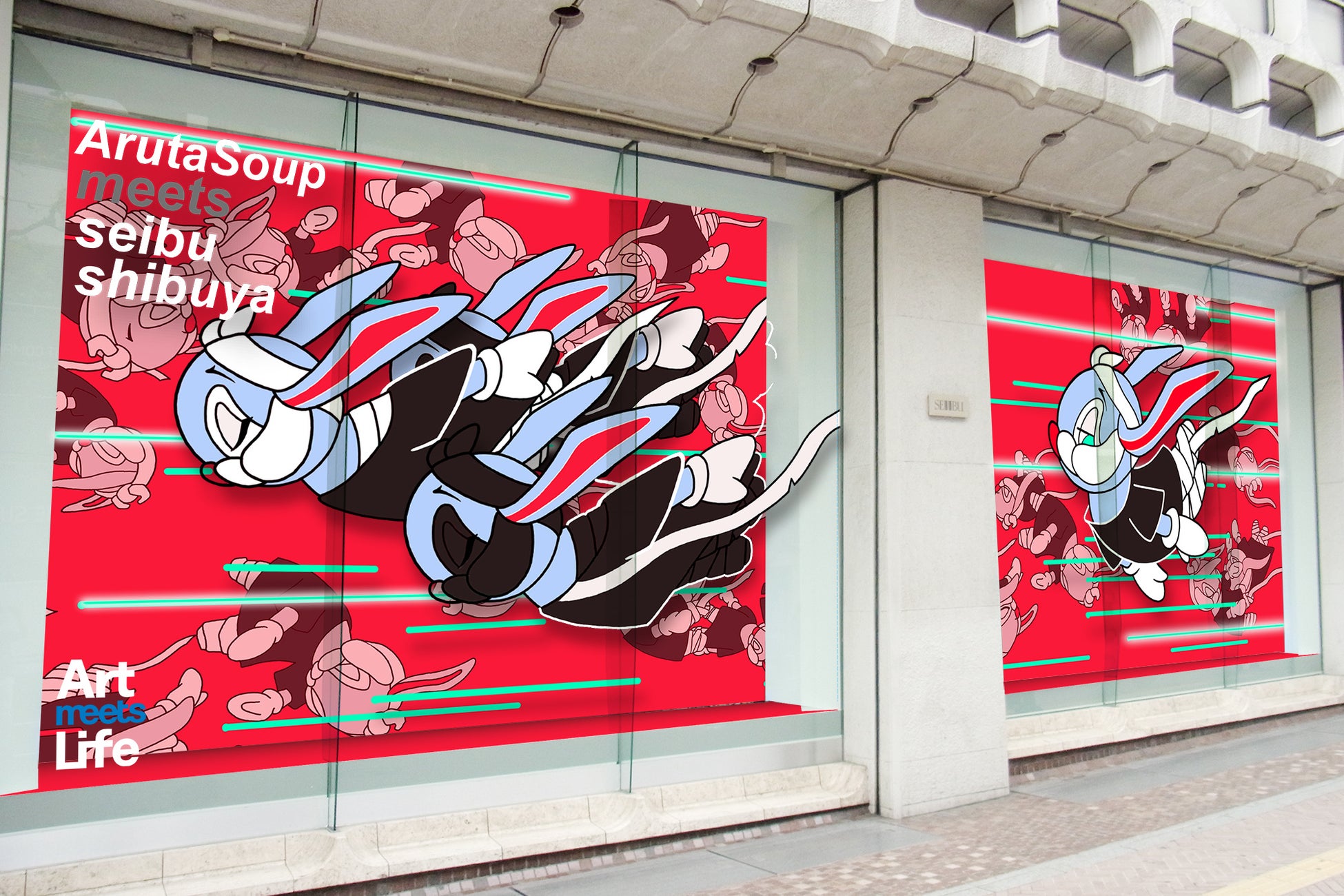 12月28日(水)~2023年1月9日(月・祝)の期間、西武渋谷店B館8階=美術画廊・オルタナティブスペースでAruta Soup“ZERO”を開催いたします。国内外で個展やアートフェアへ参加、世界各地で壁画を制作するなど多岐に渡って活動するAruta Soupとコラボレーション、「兎年」の2023年を迎えるにあたりAruta Soupのシグネチャーキャラクターであるウサギの“ZERO”が西武渋谷店の館内に登場。個展開催に先がけ、12月26日(月)からAruta Soupのシグネチャーキャラクター“ZERO”が描かれた新作の「Runners High」 がA館1階=ウインドウとB館1階=エントランスステージでご覧いただけます。明るい未来に向かって音速で駆けぬける、疾走感のある“ZERO”をA館1階=ウインドウでは『光』で、B館1階=エントランスステージではマルチモニターを使用し『動き』で表現。4年ぶりとなる日本での個展では新作を含め約26点を展示いたします。
