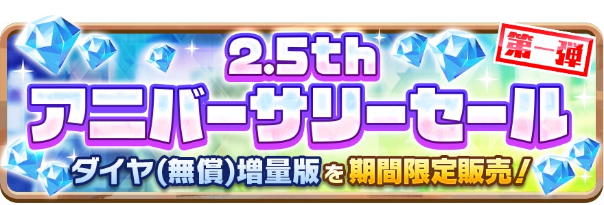 期間中、アニバーサリーセールを開催します。2.5周年を記念したお得なパックを購入することができます。