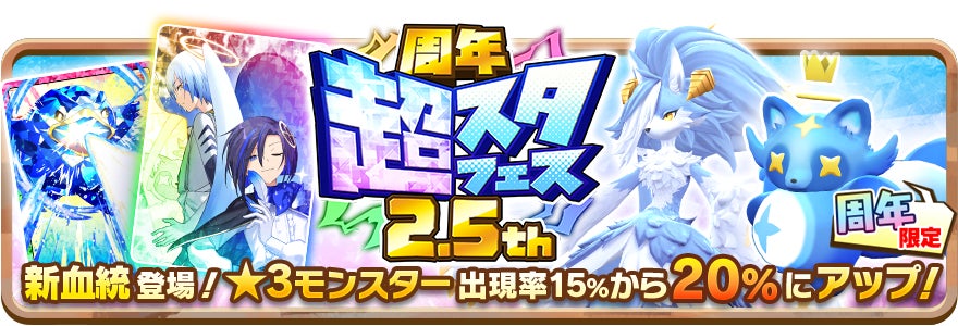 新血統モンスター「アーク」などが登場する「周年超スタフェス2.5th」や、新育成ストーリーも実装