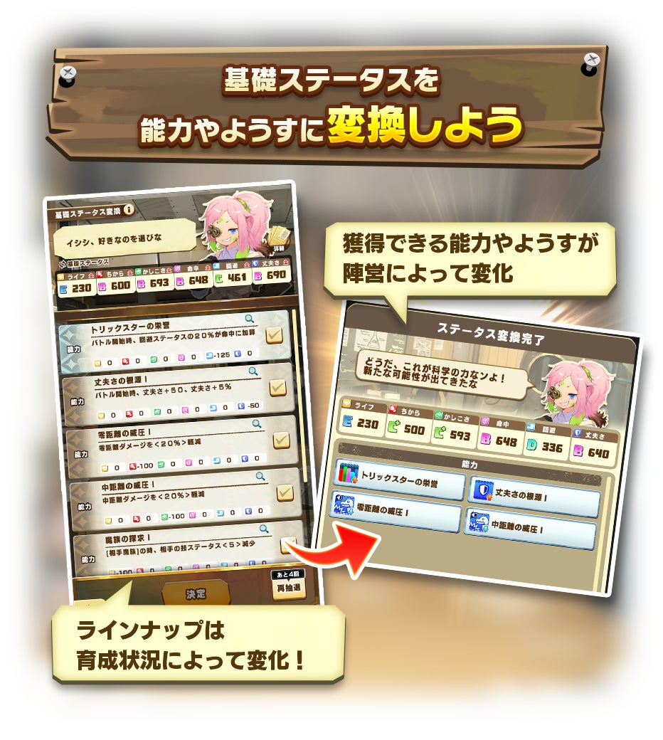 タイプ「ルミナス」はライフとかしこさを得意とする。