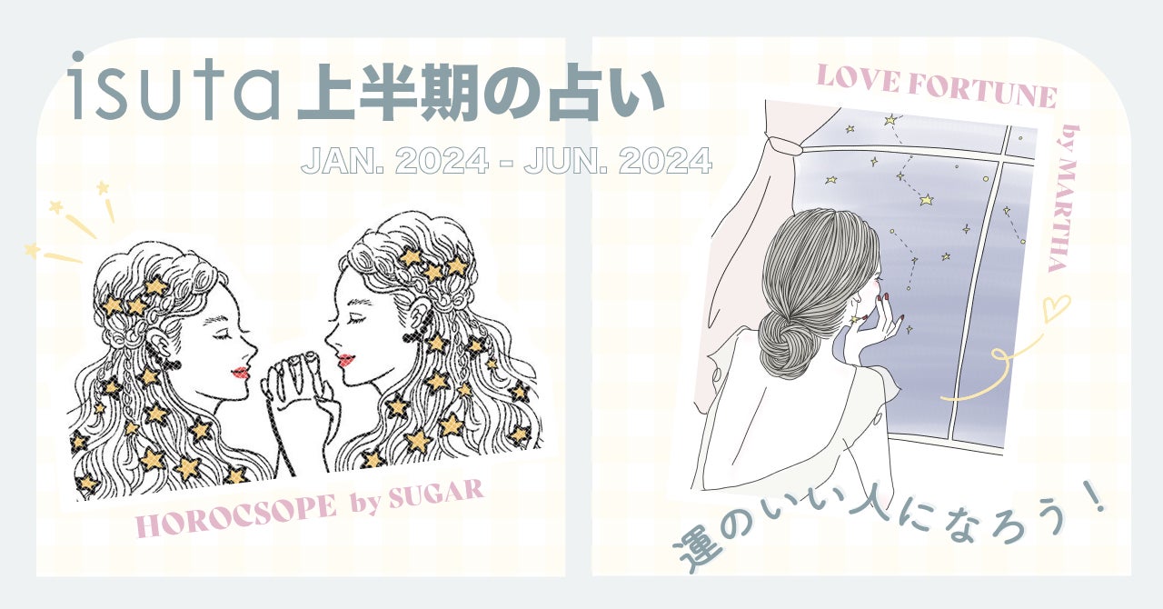 毎年1月と6月に公開しているisutaの半期の占い。2024年上半期は、占い師SUGARさんによる全体運と、アストロカウンセラー・まーささんによる恋愛運を12星座別にお届けします。