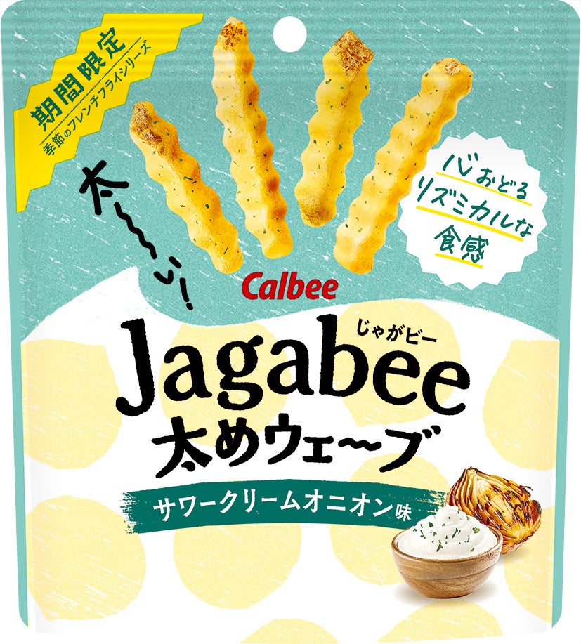カルビー株式会社(本社:東京都千代田区、代表取締役社長:江原 信)は、じゃがいもの味わいと独自の食感が楽しめる「Jagabee(じゃがビー)」から、通常より太いウェーブカットが特長の『Jagabee太めウェーブ サワークリームオニオン味』を、2024年7月29日(月)から全国のコンビニエンスストア先行で期間限定発売します。