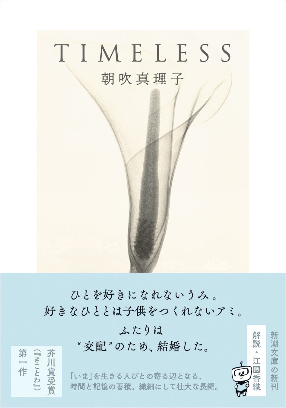 『きことわ』で芥川賞を受賞した作家の朝吹真理子さんによる、受賞第一作『TIMELESS』がいよいよ新潮文庫に登場します! 互いへの恋愛感情をもたない、うみとアミ。“交配”の約束だけして結婚したふたりと、やがて生まれた息子アオを軸に描く物語です。文庫のための解説は、作家の江國香織さんが寄稿。〈朝吹真理子さんの小説は肌で読む〉と、その魅力を挙げました。