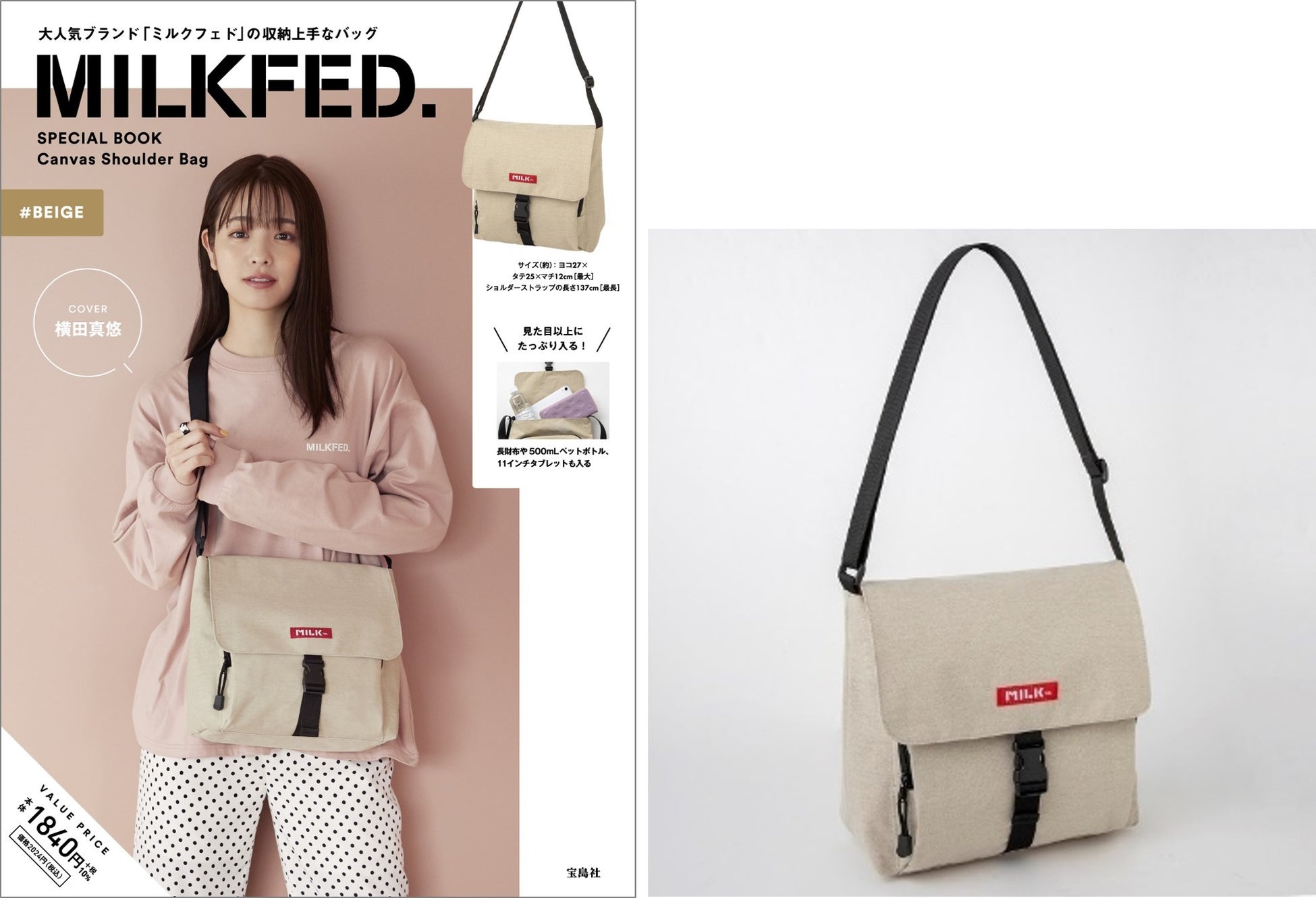 『MILKFED. SPECIAL BOOK Canvas Shoulder Bag』(ベージュ、ブラック)