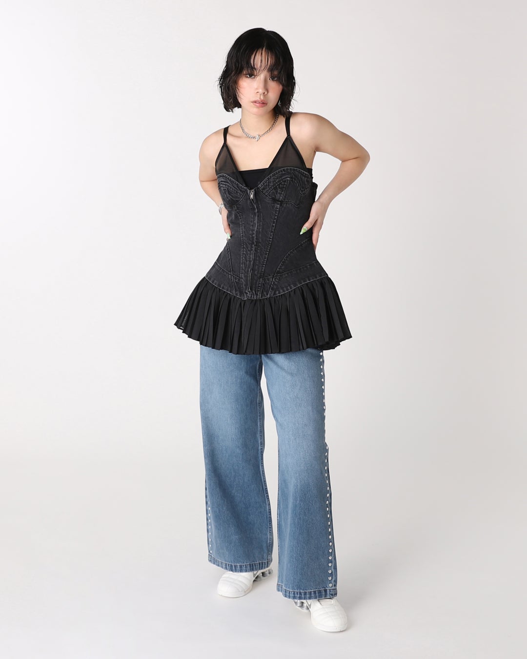 (右)Tops | FETICO – Organic Cotton Denim Pleated Bustier Top (¥63,800)