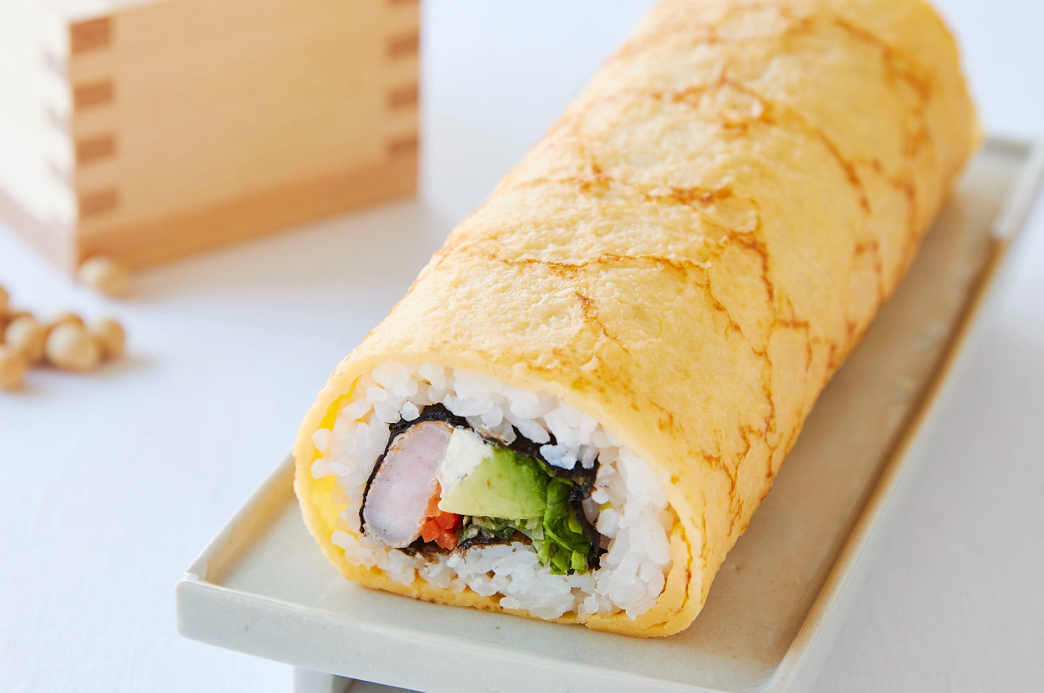 クリームチーズが味のアクセント。甘みのある玉子で包んだ軽やかな味わいのサラダ恵方巻き。