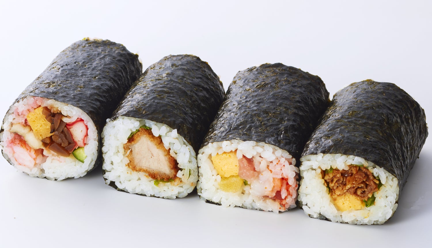 開運恵方巻、ヒレカツ巻、海鮮恵方巻、 牛カルビ巻の食べ比べも楽しめる ハーフサイズのセット。