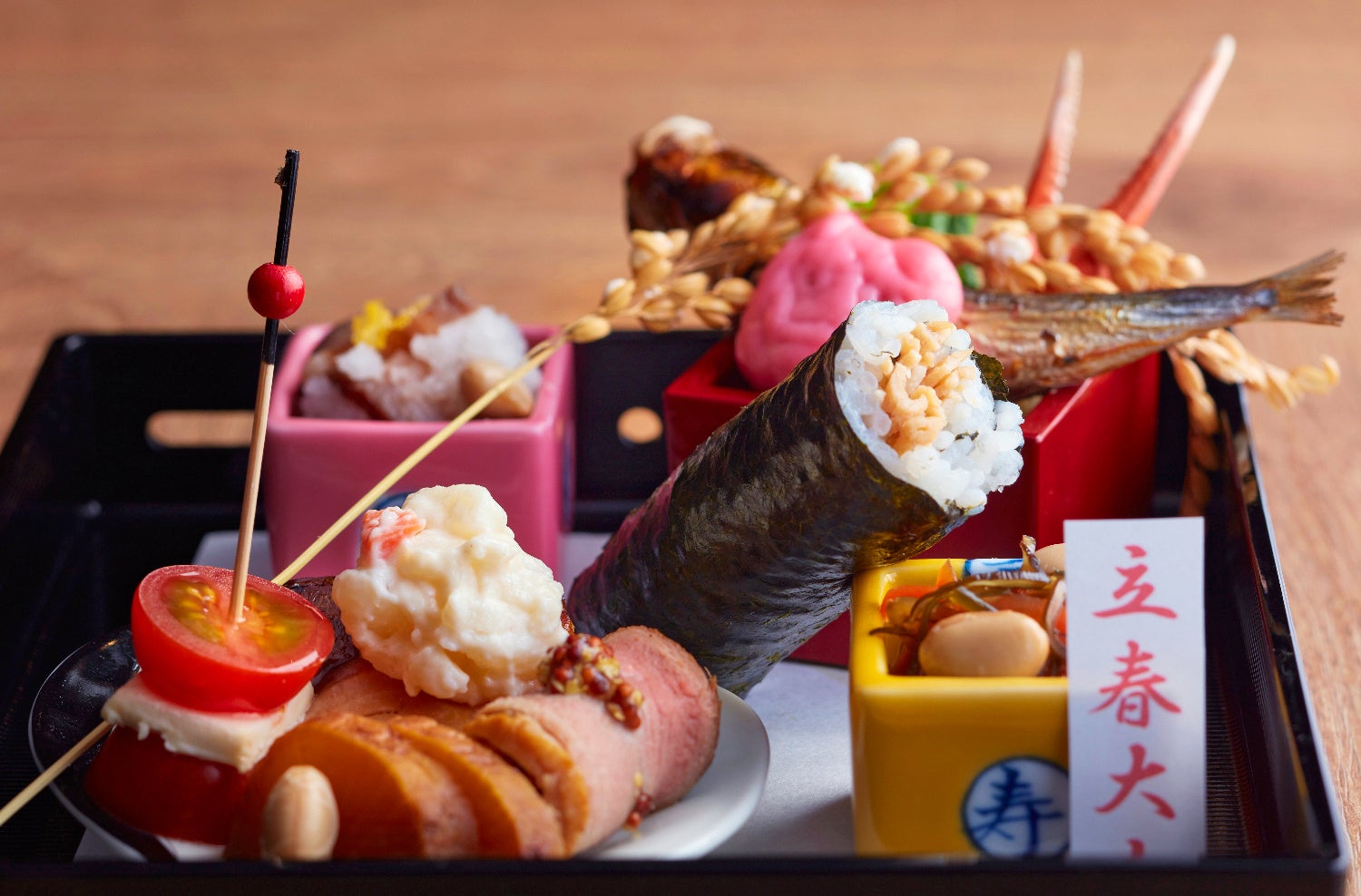 プレートにちりばめた節分料理や食べやすいサイズの巻き寿司。お食事としても酒肴のおいしさとしても。