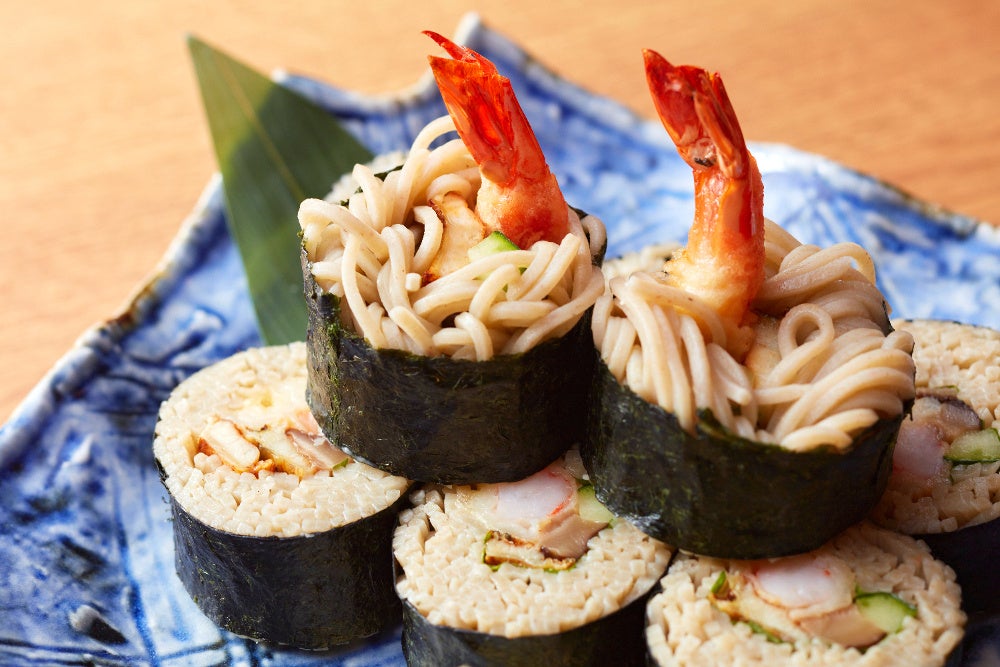 えび天や穴子、しいたけなどをそばで巻いた「美々卯」自慢の太巻をご賞味ください。