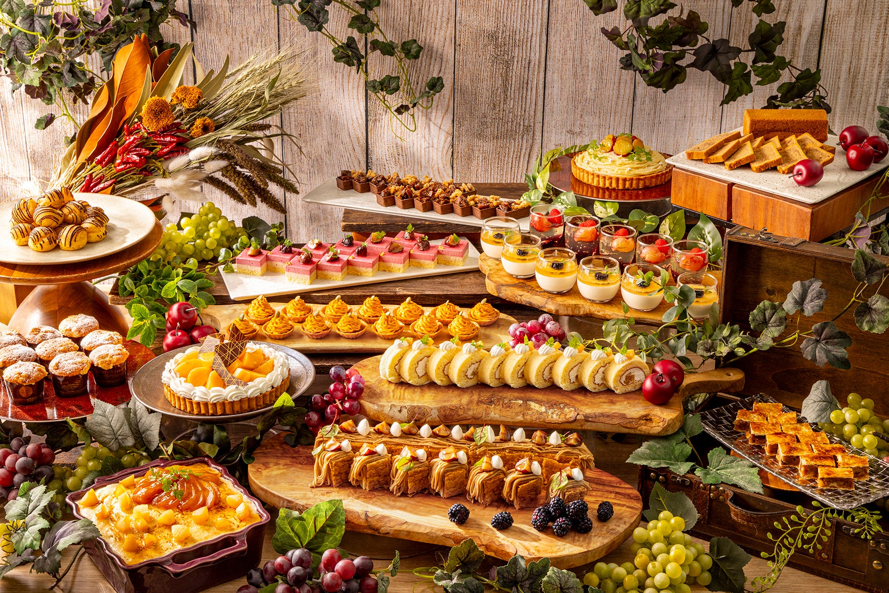 <デザートエリア> 国産和栗のミルフィーユやアップルパイ、カボチャのモンブランなど、秋に旬を迎えるさまざまな食材をスイーツに。シナモンやジンジャー、カルダモンなどのスパイスのアクセントを楽しみながら秋の味覚をご堪能ください。 |