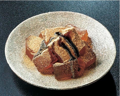 奄美大島産のさとうきびを100%使用した黒糖をふんだんに使ったわらび餅。あとがけで純生黒糖黒蜜をかけると
