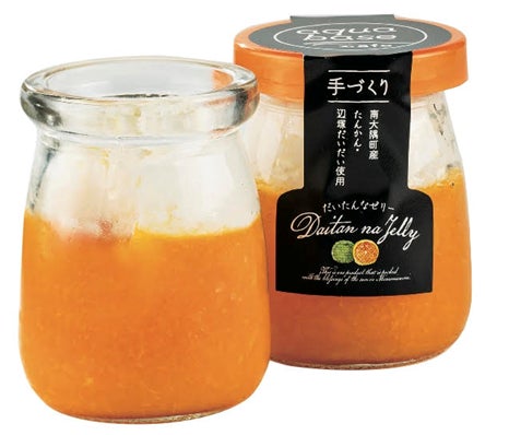 下は「たんかん」の果肉がたっぷり入った濃厚ゼリー、上は「辺塚だいだい」の酸味が爽やかなクリーム。柑橘の爽やかな香りが口いっぱいに広がります。