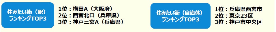 ※「住みたい街ランキング」では、行政区はまとめて一つの自治体として集計していますが、大阪市・堺市・京都市・神戸市は行政区を分けて集計しています。