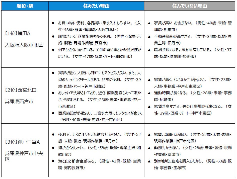 ■住みたい街(駅)トップは、3年連続で梅田A