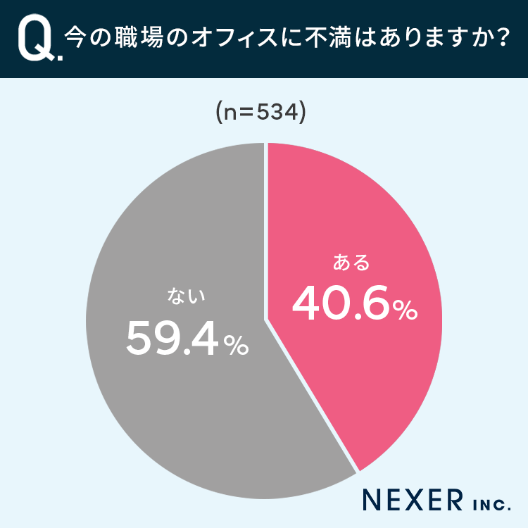 40.6%の方が、今の職場のオフィスに不満が「ある」と回答しています。