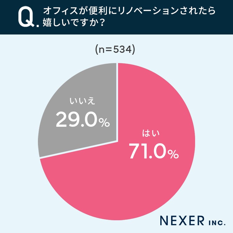 ■71%が「オフィスが便利にリノベーションされたら嬉しい」