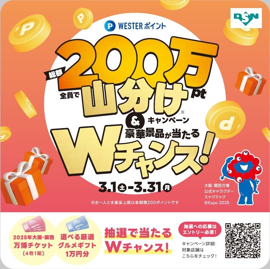 【㈱ジェイアール西日本デイリーサービスネット】エキマルシェ・駅ナカ店舗でWESTERポイント「総額200万ポイント山分けキャンペーン&豪華景品が当たるWチャンス」を実施します!